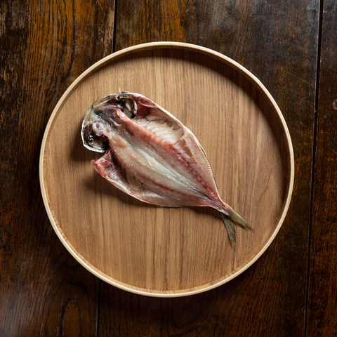 長崎県産の鮮度の良い真アジを、西伊豆の工場で天城水流の湧き水を使用し加工しています。工場から約1時間弱かけて汲みに行っている湧き水と甘塩を使って味付けした干物は、生臭さが少なくちょうどよい塩味に。身が柔らかくふんわりとした食感が味わえます。